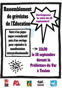 18 septembre – Rassemblement des grévistes de l’EN