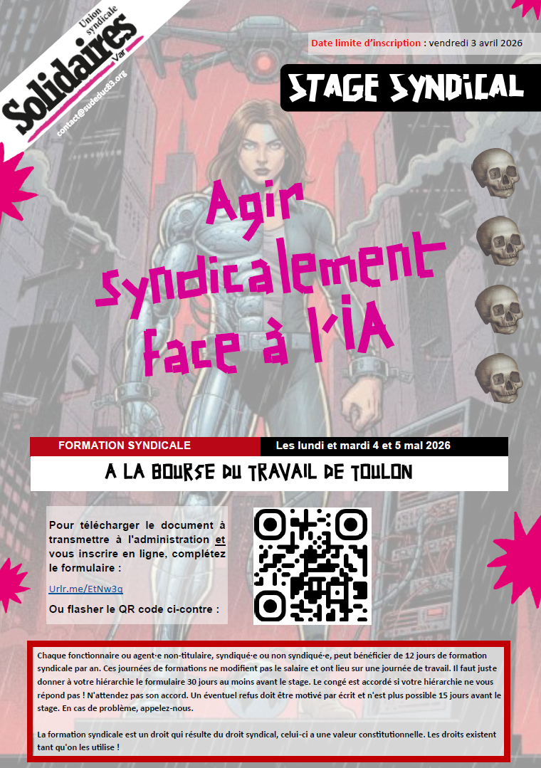 Lundi 4 et mardi 5 mai 2026 : Stage Solidaires Agir syndicalement face à l’IA