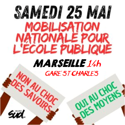 LE SAMEDI 25 MAI : MOBILISATION NATIONALE POUR L’ÉCOLE PUBLIQUE
