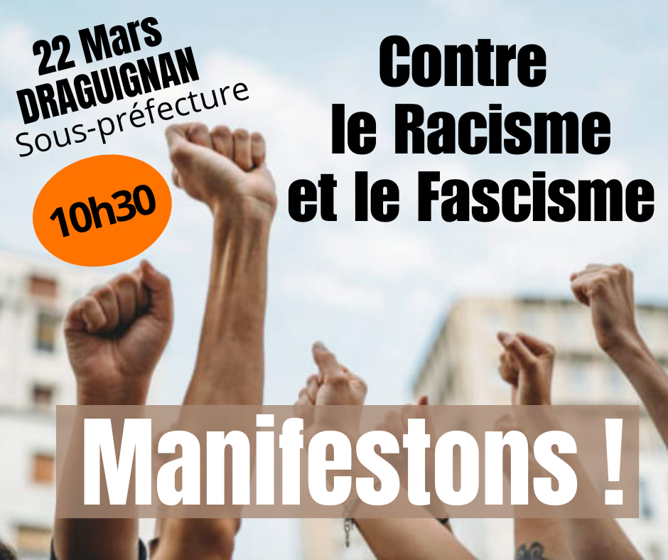 Mobilisation contre le racisme et le fascisme samedi 22 mars à Toulon et à Draguignan