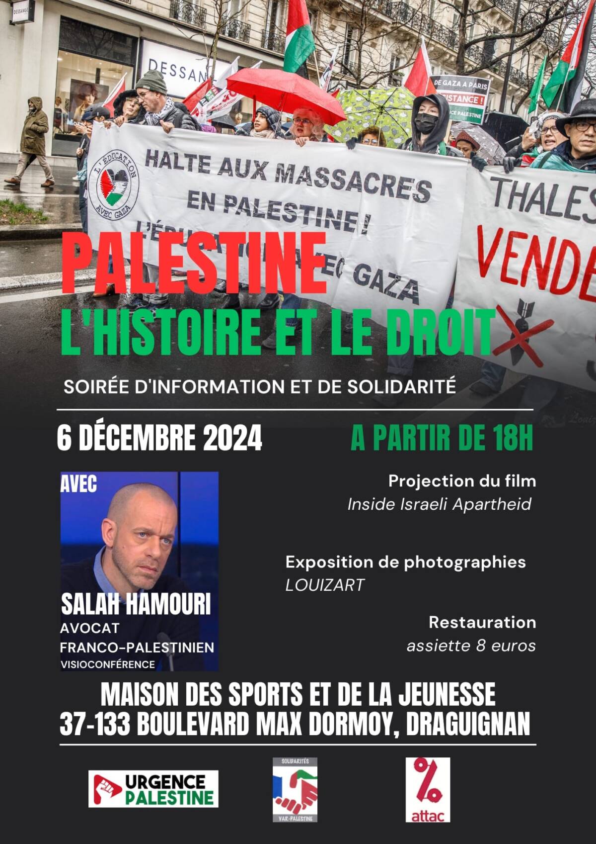 Soirée d’information et de soutien à la Palestine et au Liban vendredi 6 décembre 2024 à Draguignan